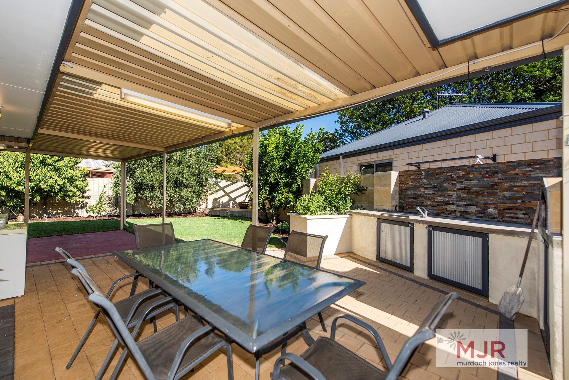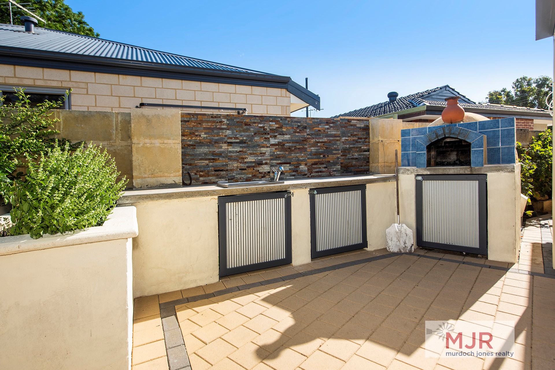 After a hard day of tinkering, why not fire up the sensational pizza oven and entertain some guests in the backyard among the established citrus and fruit trees?