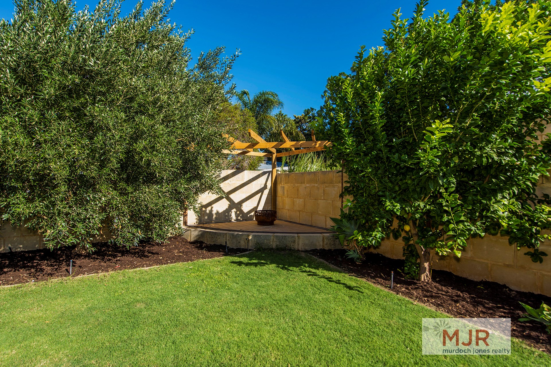 The manicured gardens and lawn are designed for easy maintenance with auto-reticulation throughout.