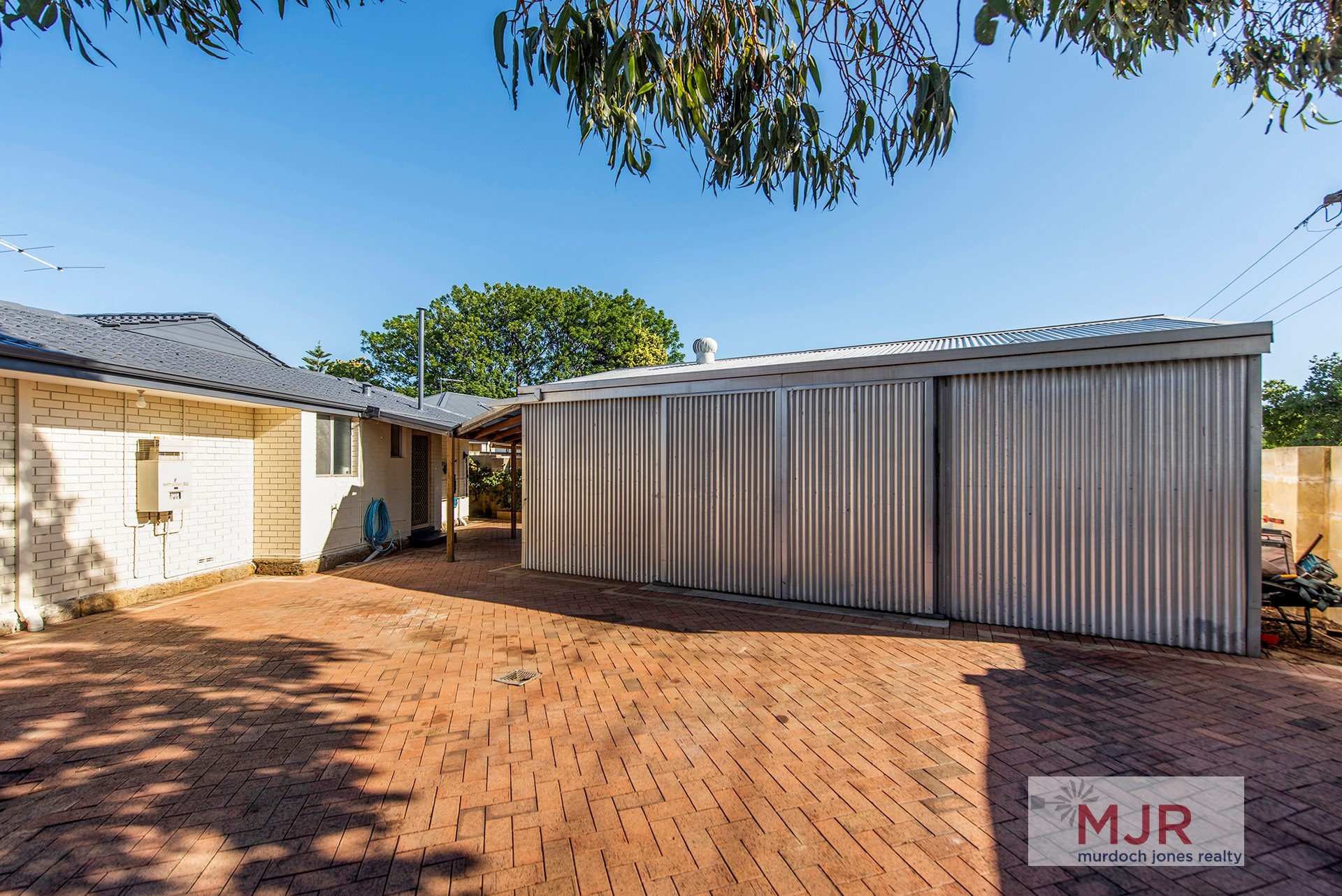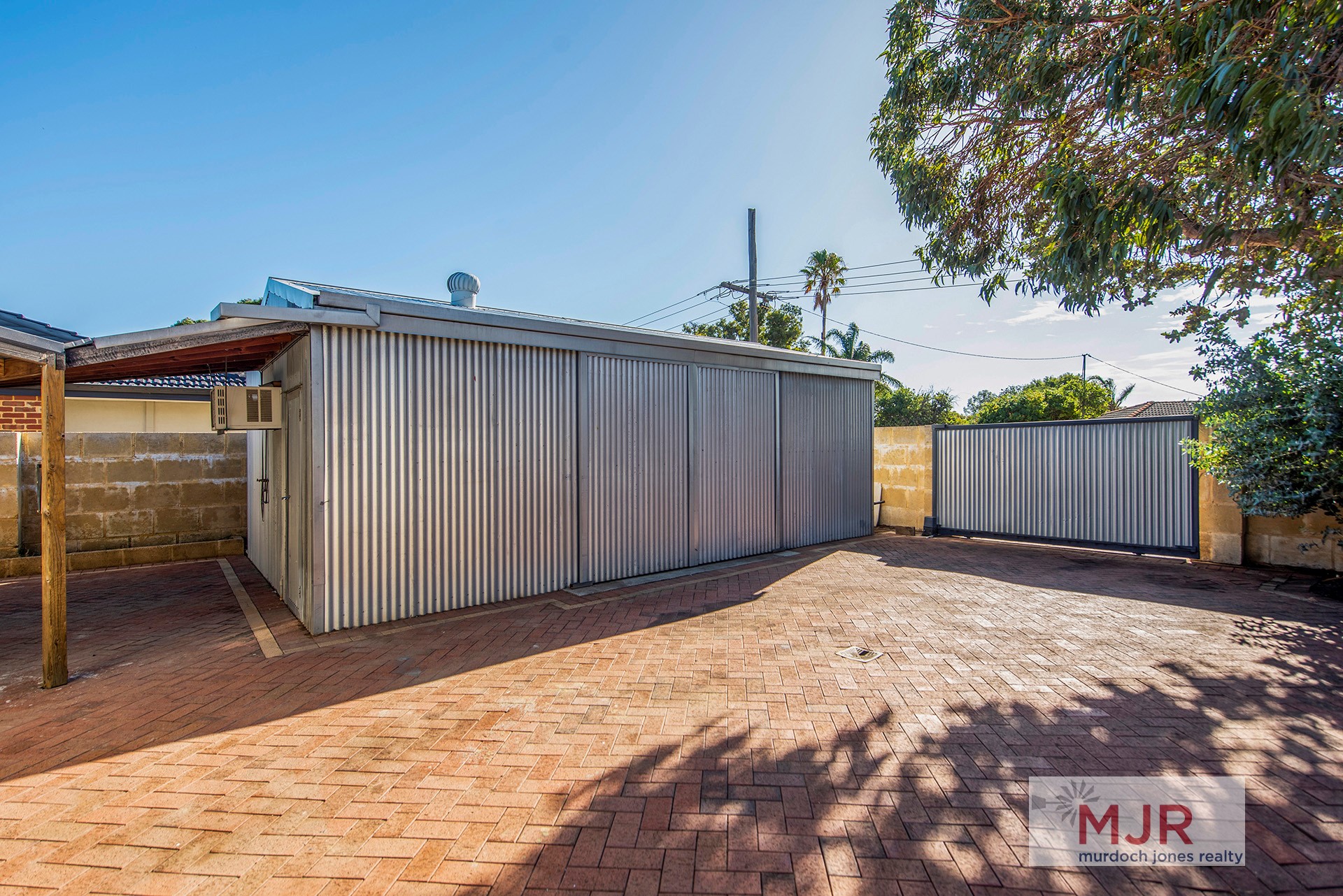 The courtyard outside the shed is also generous and could easily fit three vehicles.