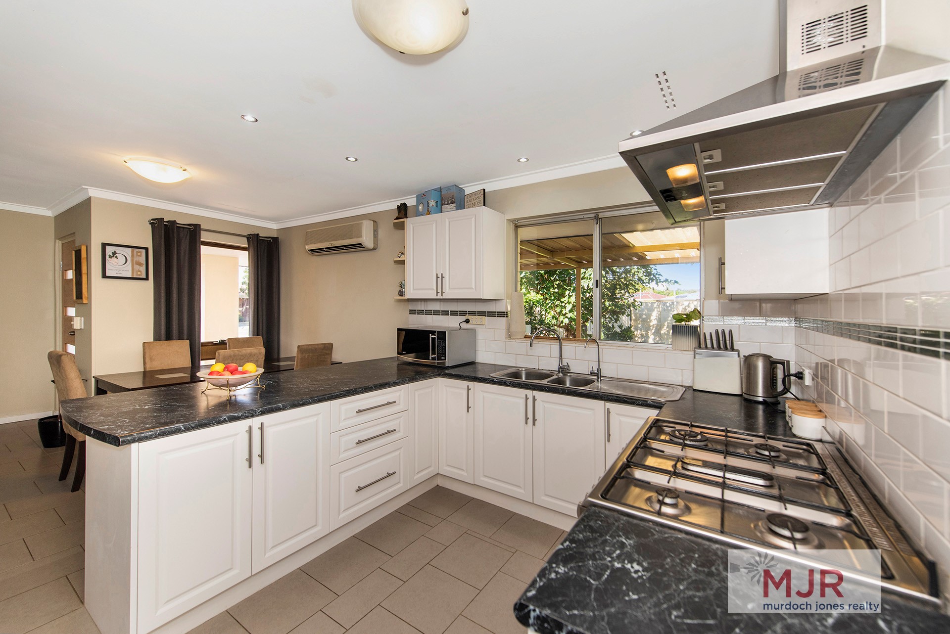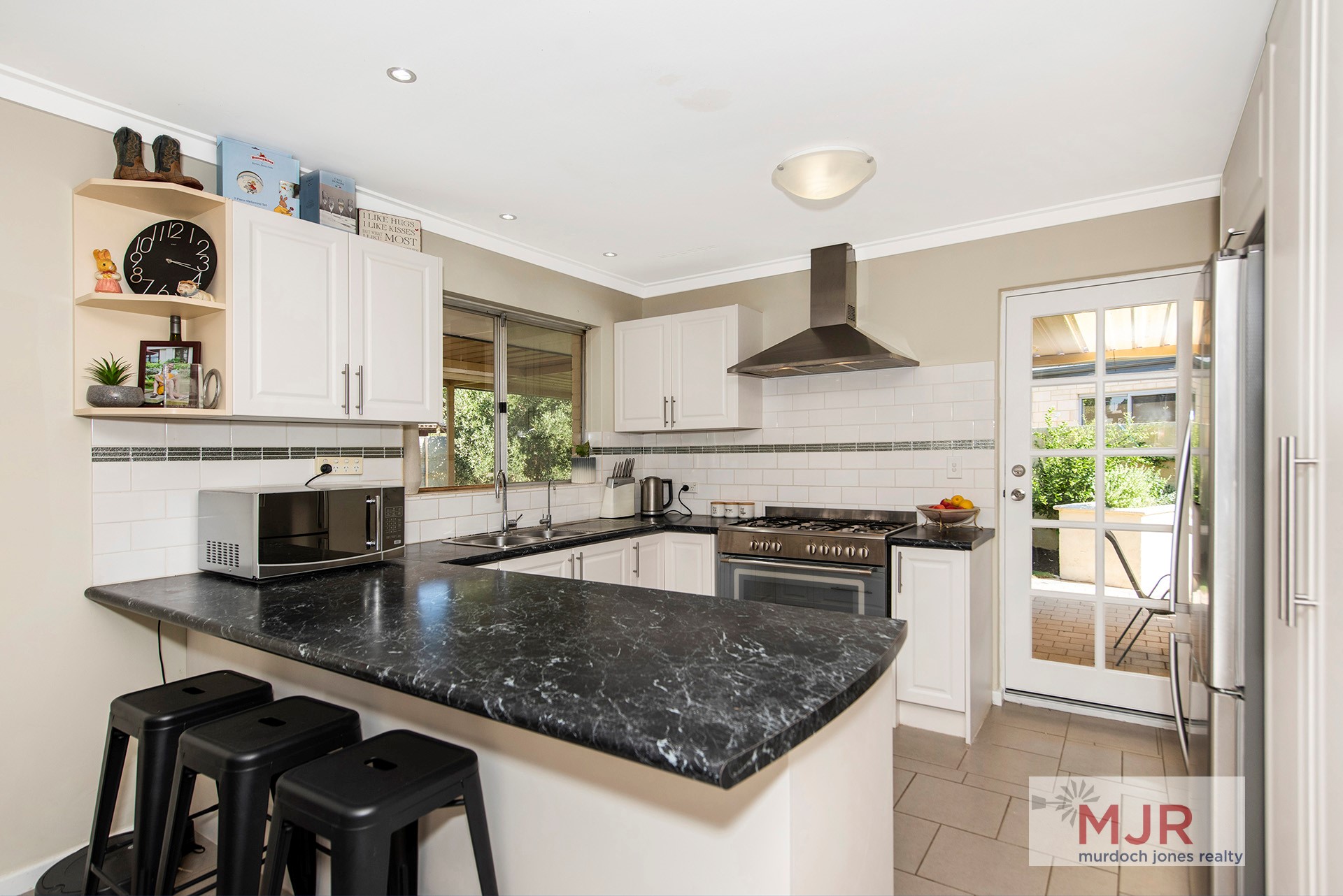 Heading inside from the patio to the modern, well-designed kitchen, you will find a huge 'euro' free-standing stove and plenty of bench space.