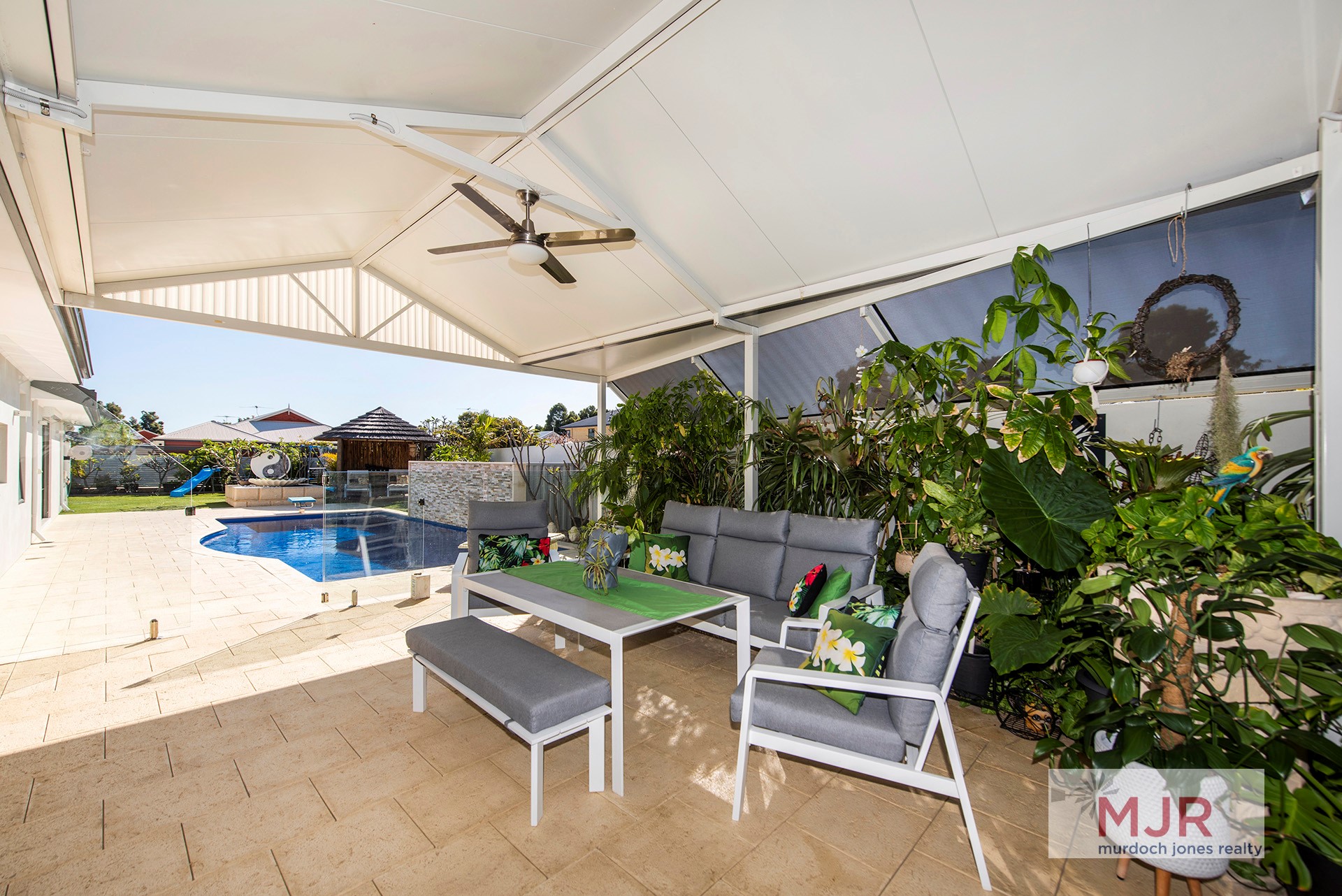 • You could be mistaken for thinking you are in a 5 star resort in Bali - with quality outdoor kitchen access to a third toilet, a nearly Olympic size below ground pool, a relaxing Bali hut surrounded by manicured gardens and a fully fenced yard for kids to play and keep safe.