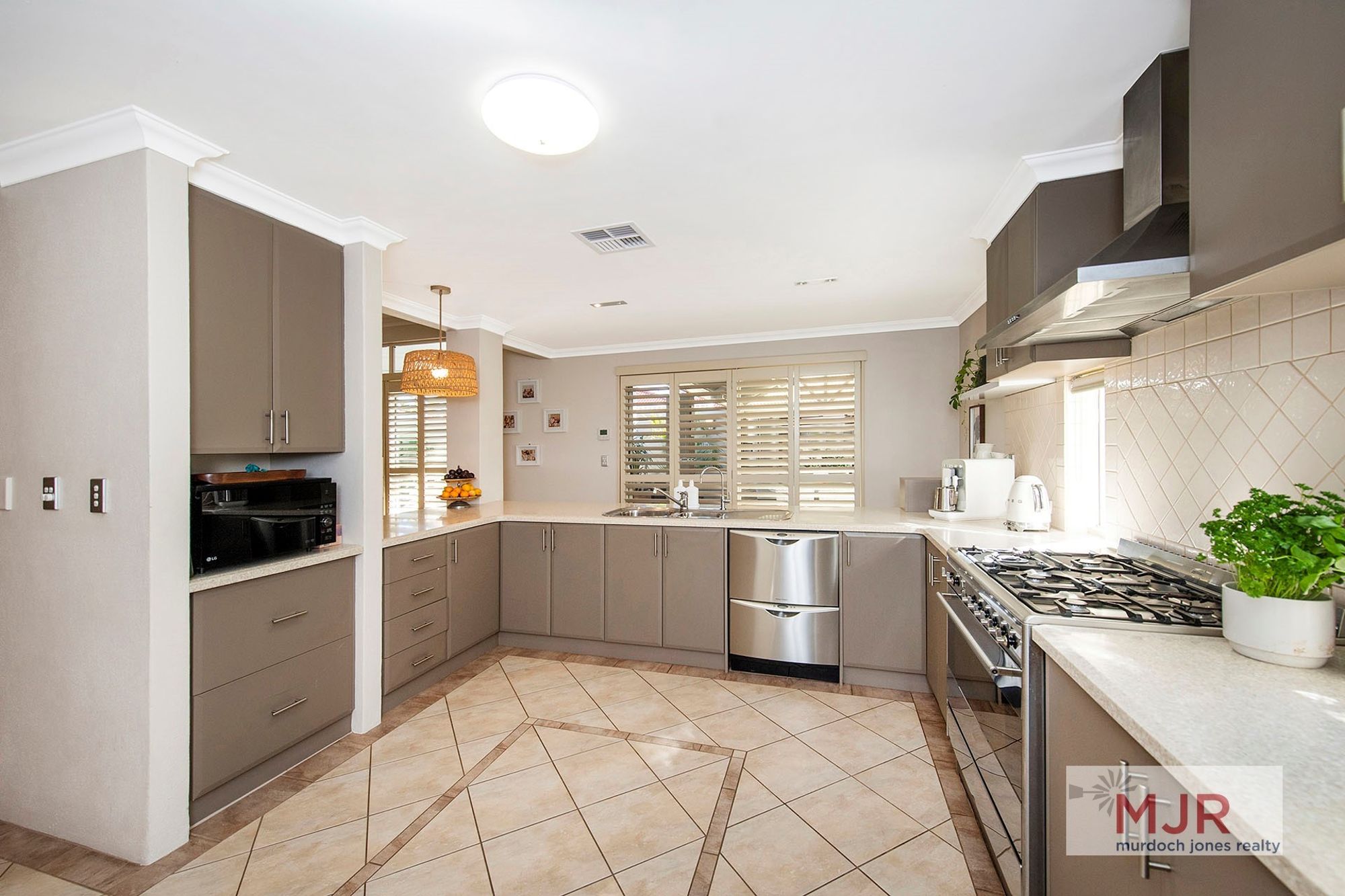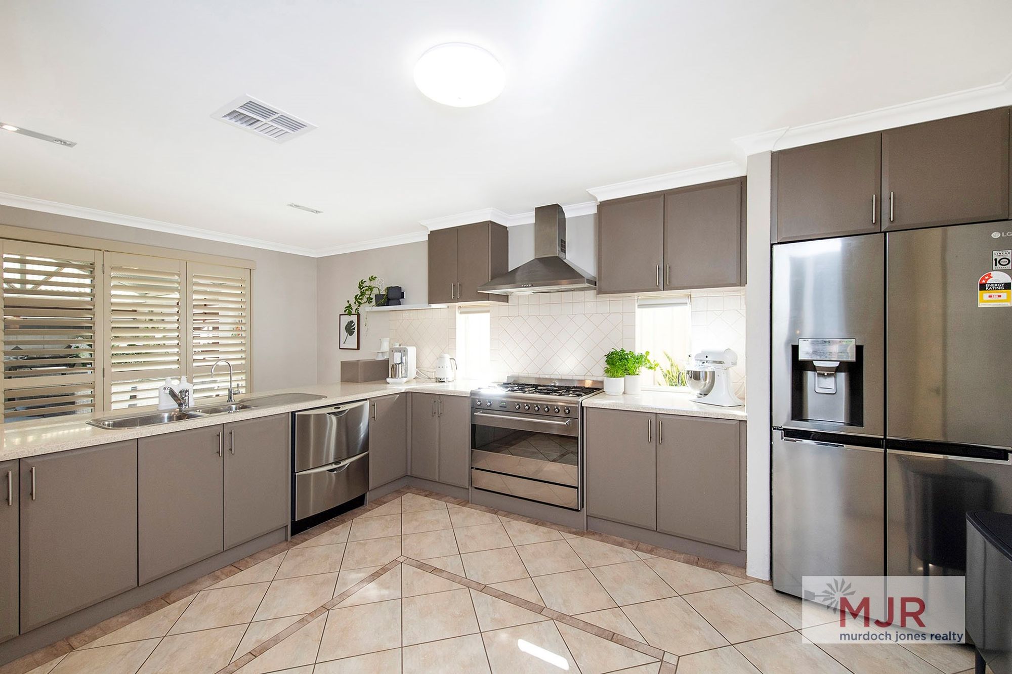 *Modern kitchen with stainless steel appliances, 900mm Smeg oven, dishwasher and large pantry