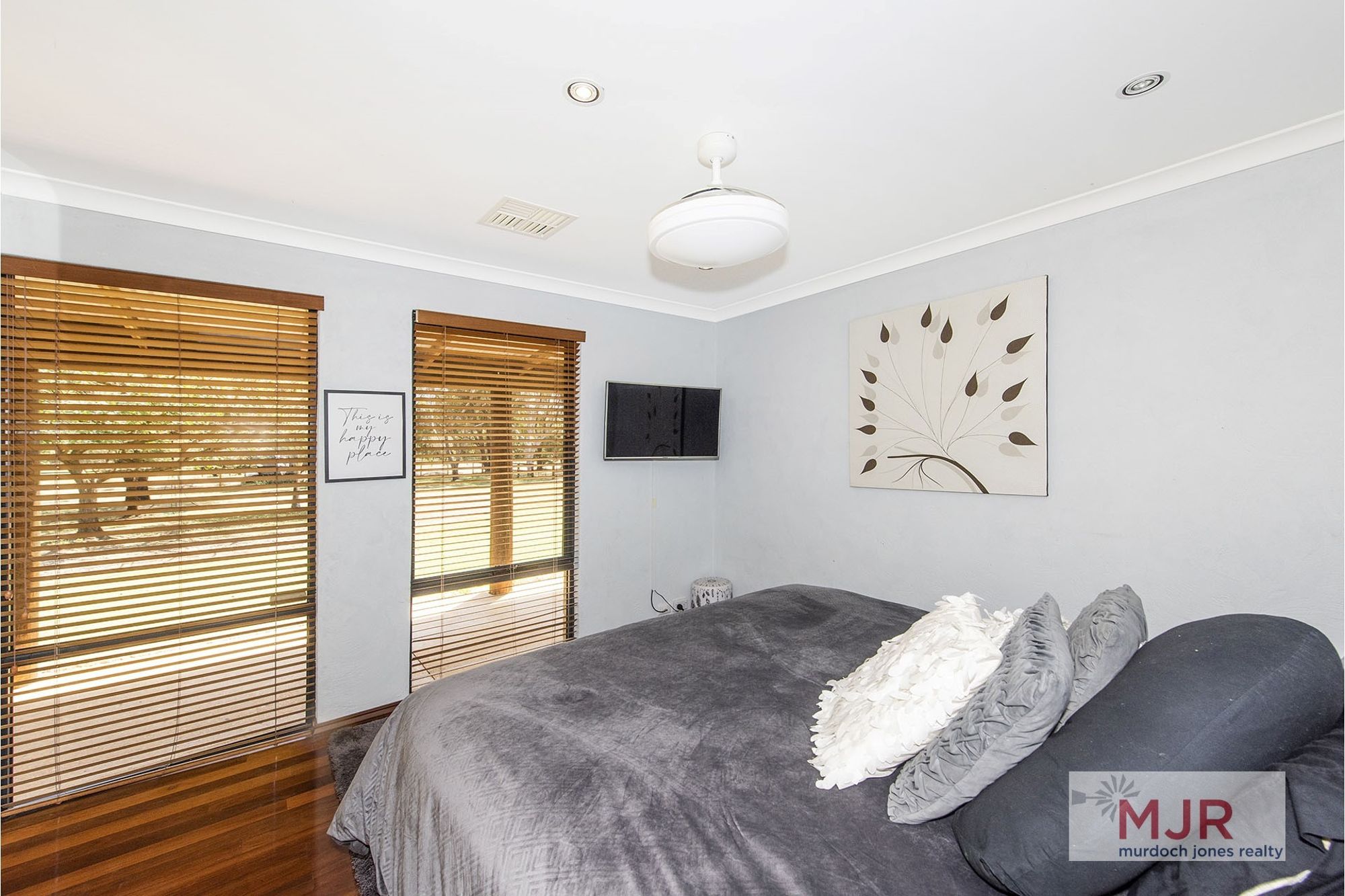 The master bedroom includes a walk in robe and an ensuite complete with spa, shower and separate toilet.
