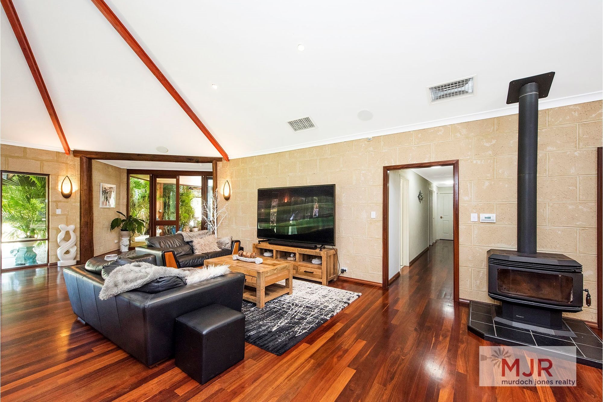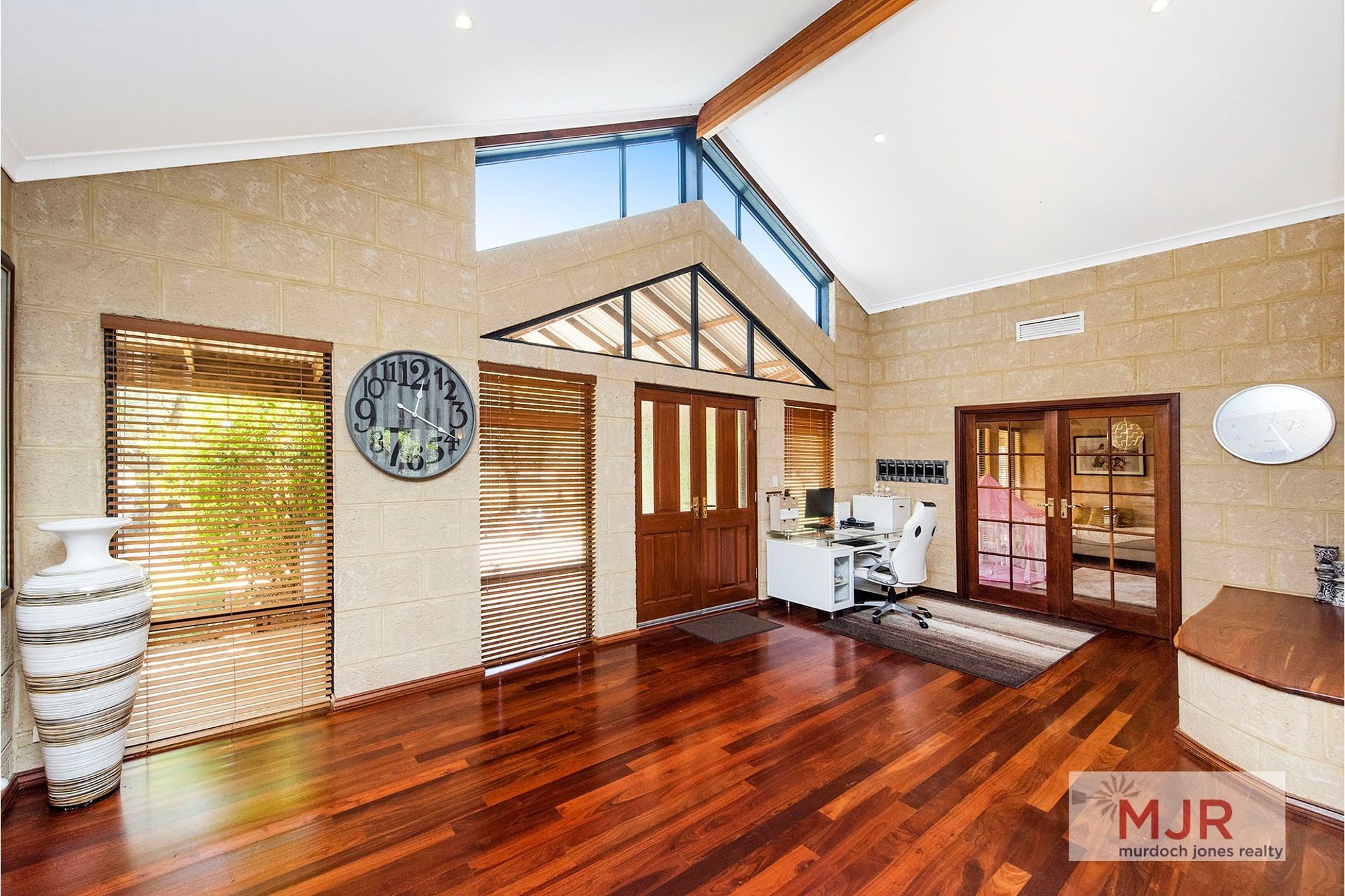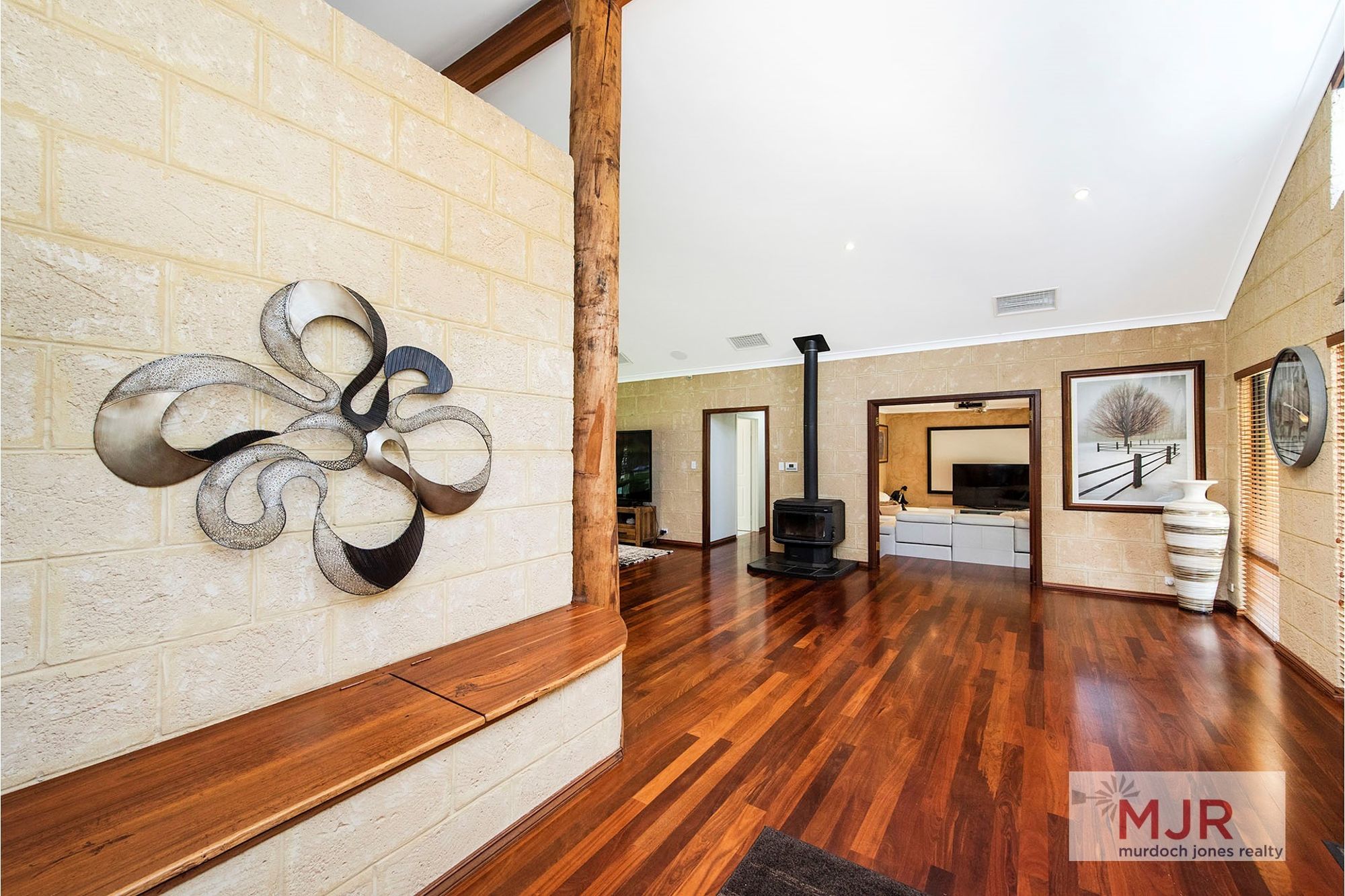The high vaulted ceilings throughout the kitchen, dining and family areas are complimented by jarrah flooring, giving the area the ultimate WOW factor.