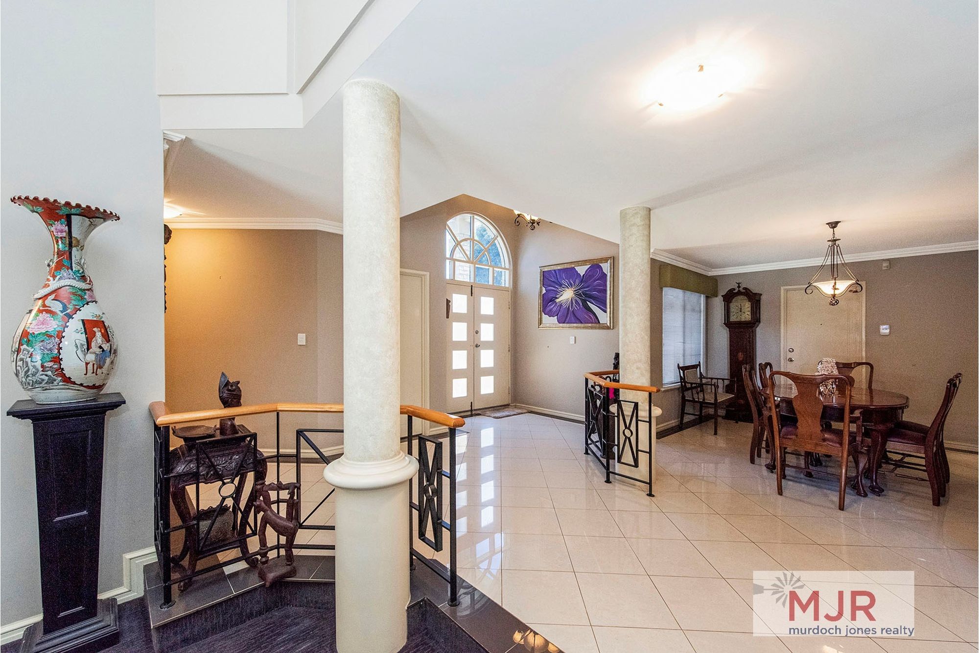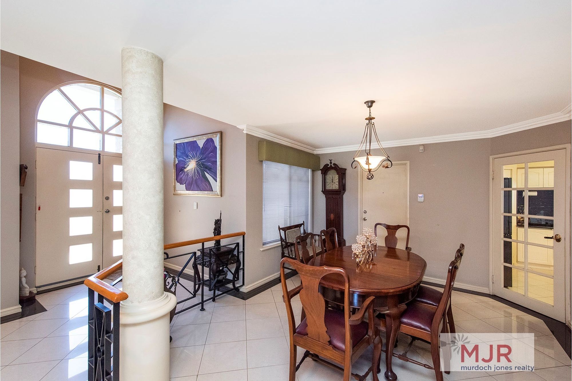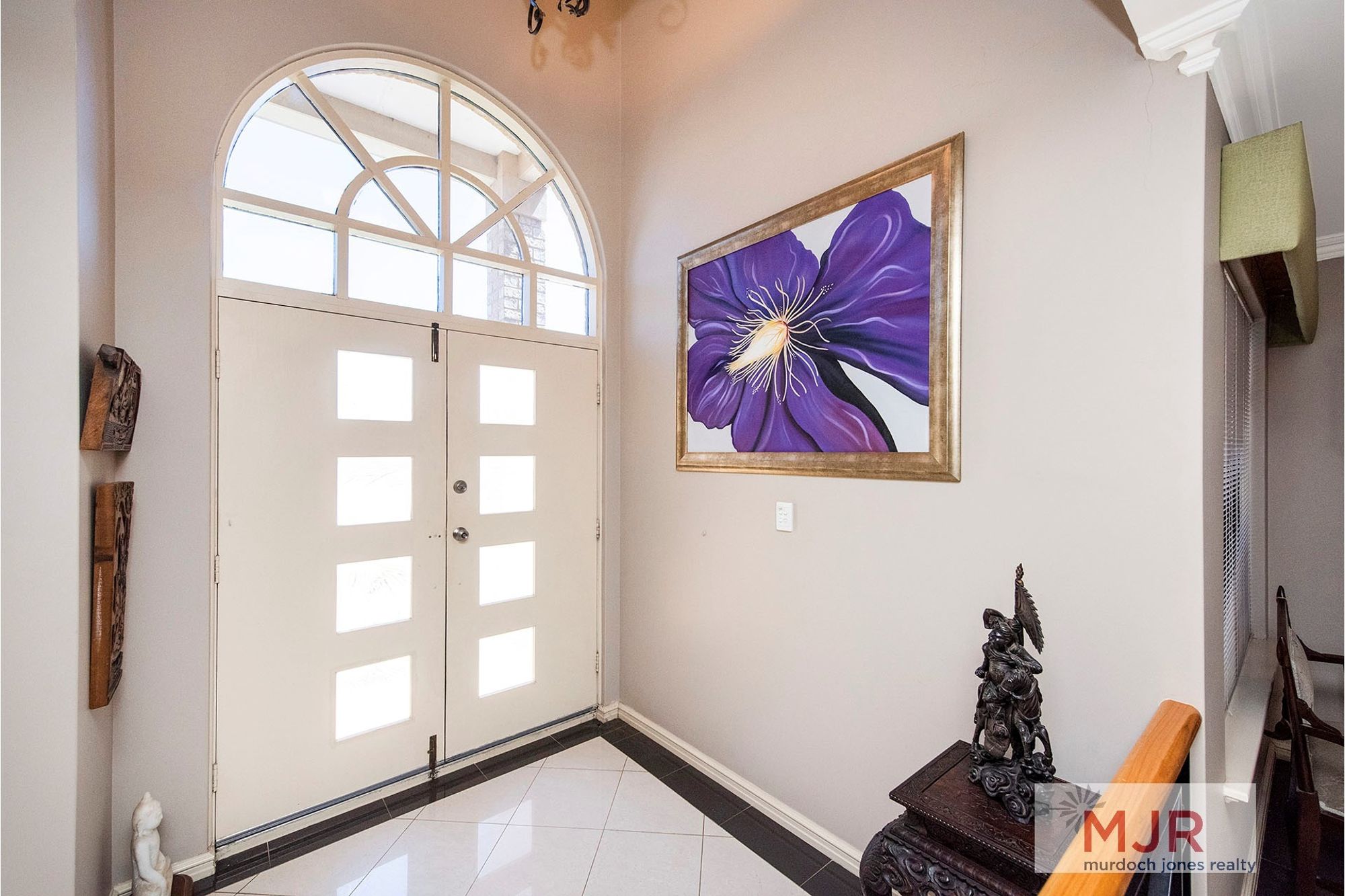 Entry to the home is through impressive double doors and a foyer complete with polished porcelain tiles.