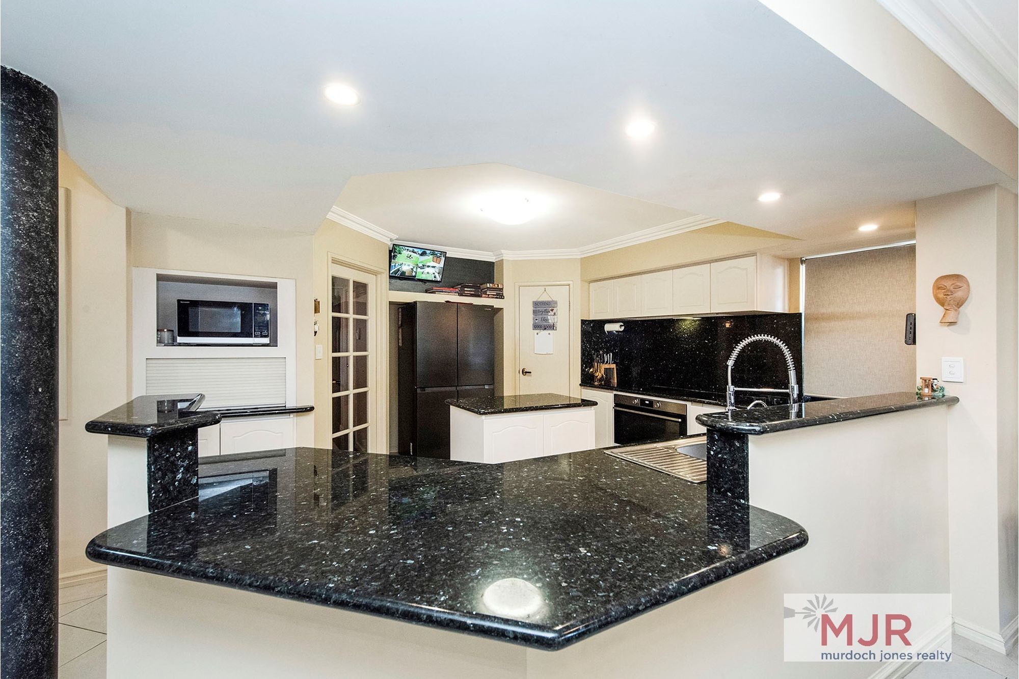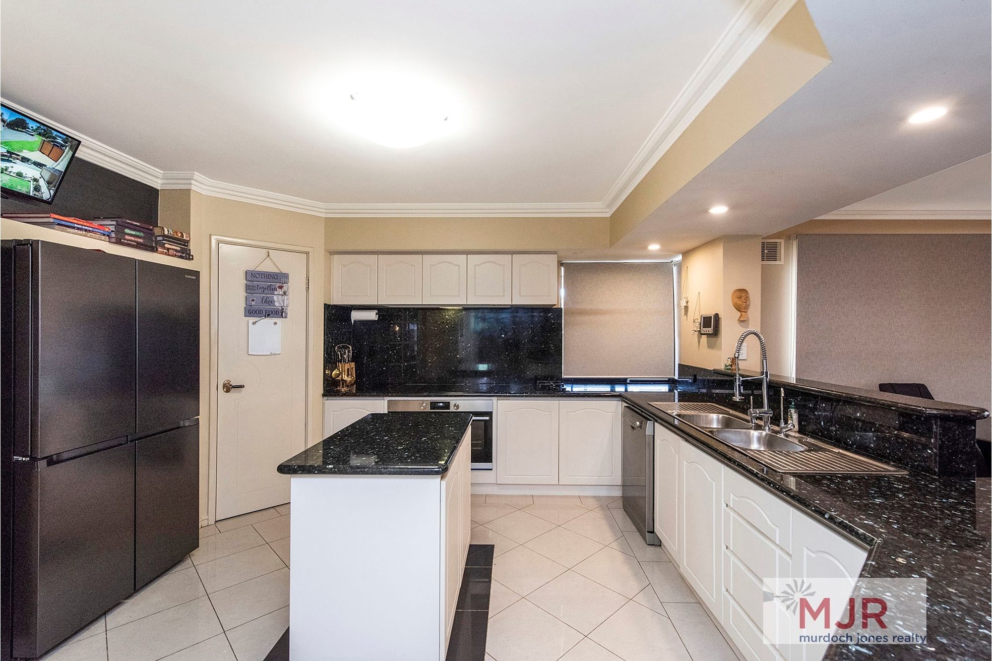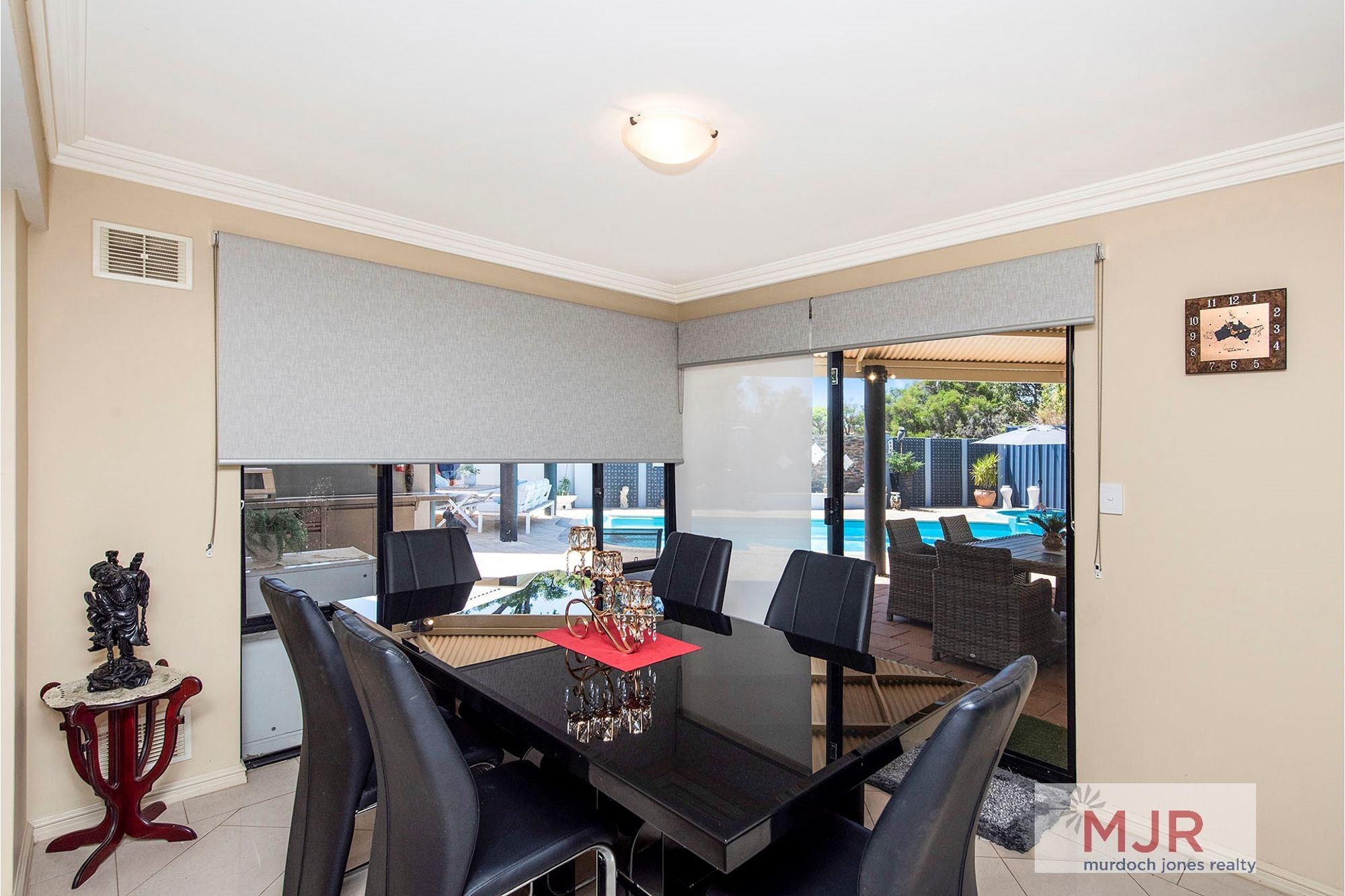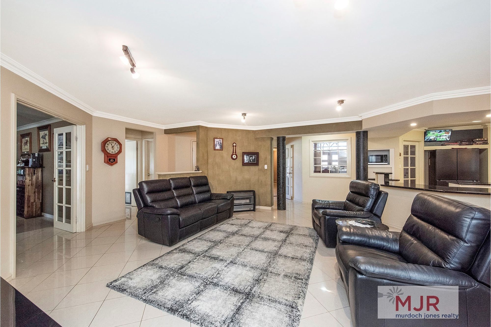 Entry to the home is through impressive double doors and a foyer complete with polished porcelain tiles.