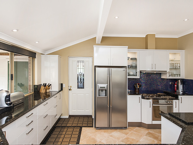 * Huge modern kitchen with all the mod cons including double stainless steel sink, oven and built in microwave, Asko dishwasher, overhead cupboards, pantry, utility cupboard, tiled splashbacks, granite benchtops and breakfast bar.