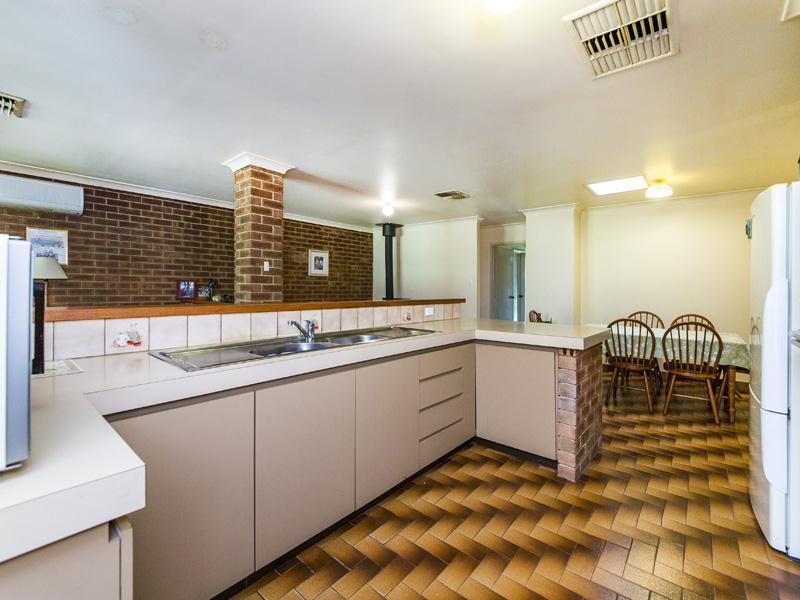 *Modern kitchen with double stainless steel sink, electric hot plates, oven, overhead cupboards, pantry and breakfast bar